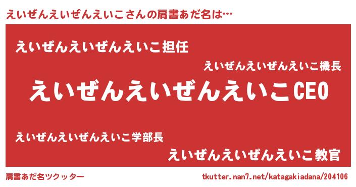 | 女子向けラノベタイトル風あだ名 | 『えいぜんえいぜんえいこ姫と円卓の騎士』 |
