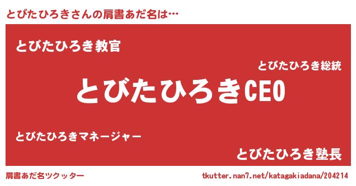 | 胡散臭い通販商品みたいなあだ名 | 『必ず成功するブレスレット…その名も「とびたひろき」』 |