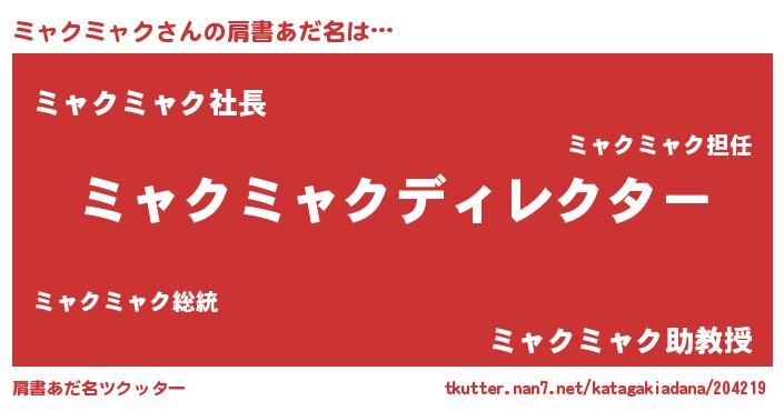 | ヘコむあだ名 | 『ミャふぇ~』『ミャクミャク(小並感)』 |