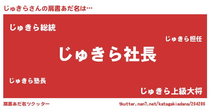 | 欧米人風あだ名 | 『マイケルじゅきら』『ウサインじゅきら』 |