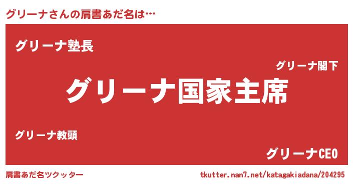 | 意味不明あだ名 | 『グリーナフォーエバー』『自称グリーナ』 |