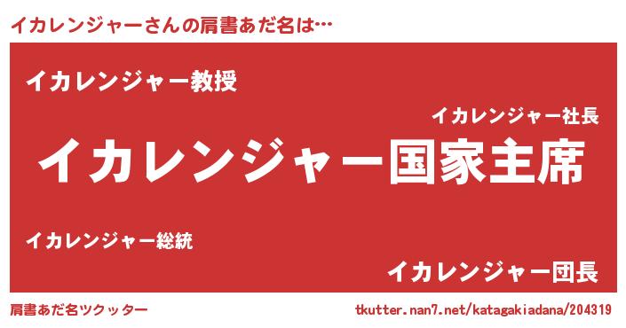 | ファンタジー風あだ名 | 『エターナルイカレンジャーー』 |