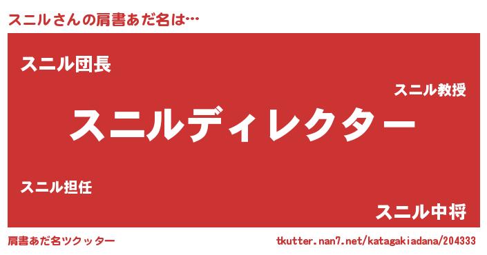 | 欧米人風あだ名 | 『アンジェラ・スニル』『ウサインスニル』 |