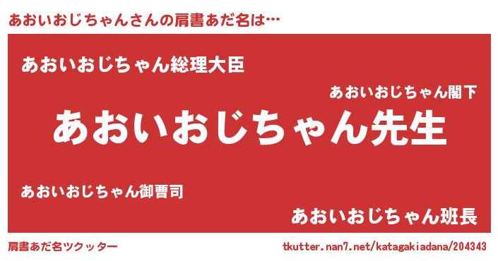 | 男性向けラノベタイトル風あだ名 | 『誰もが恐れるあのあおいおじちゃんが、ぼくの専属メイドになるようです。』 |