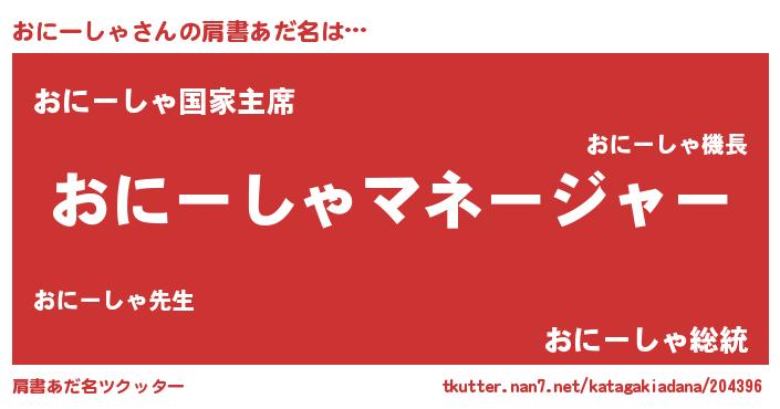 | 意味不明あだ名 | 『おにーしゃフォーエバー』 |