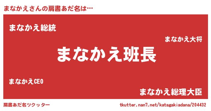| 欧米人風あだ名 | 『ウサインまなかえ』『マイケルまなかえ』 |
