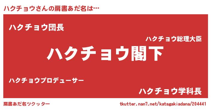| ヘコむあだ名 | 『ハクお』『豆乳』『ハクふぇ~』 |