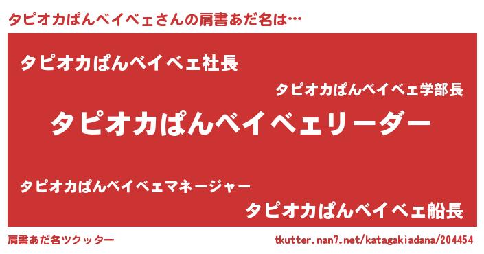 | 男性向けラノベタイトル風あだ名 | 『タピオカぱんベイべェの嫁は女の子じゃないと思った?』 |