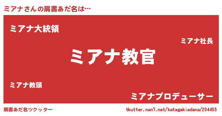 | ヒーロー風カッコイイあだ名 | 『仮面ミアダー』『ウルトラミアナマン』 |