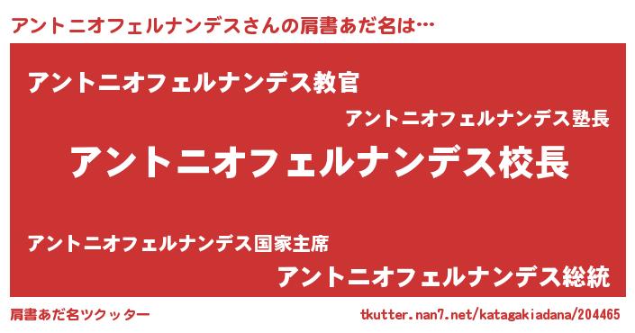 | 意味不明あだ名 | 『永久保存アントニオフェルナンデス』 |