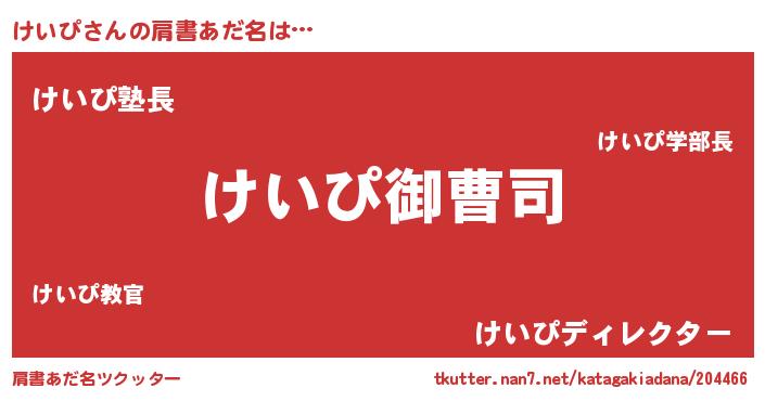 | ヘコむあだ名 | 『けいっふぃ~』『けいっぺ』 |