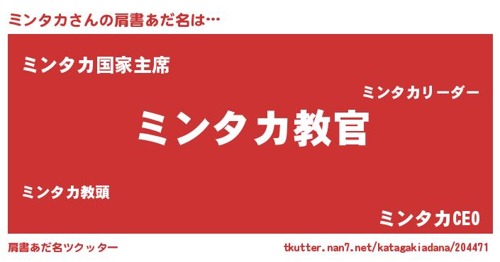 | 意味不明あだ名 | 『住所不定無職ミンタカ(47歳)』 |