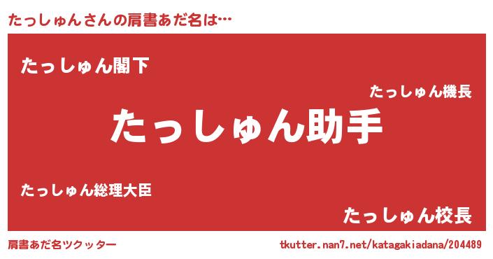 | 男性向けラノベタイトル風あだ名 | 『おまえをオタクにしてやるから、俺をたっしゅんにしてくれ! 』 |