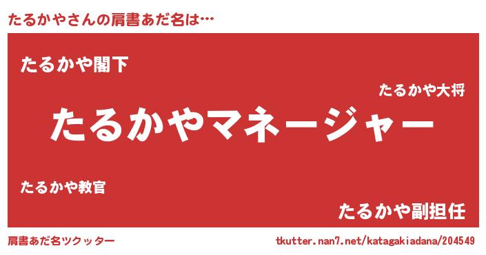 | 意味不明あだ名 | 『自称たるかや』『永久保存たるかや』 |