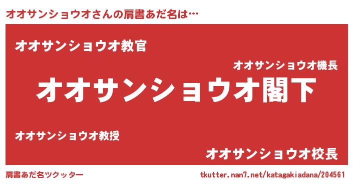 | 男性向けラノベタイトル風あだ名 | 『Re:オオサンショウオから始める異世界生活』 |