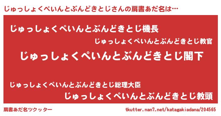 | 意味不明あだ名 | 『自称じゅっしょくぺいんとぶんどきとじ』 |