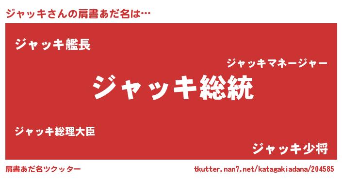 | 男性向けラノベタイトル風あだ名 | 『Re:ジャッキから始める異世界生活』 |