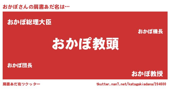 | 女子向けラノベタイトル風あだ名 | 『おかぽの契約王妃』『死神おかぽの再婚』 |