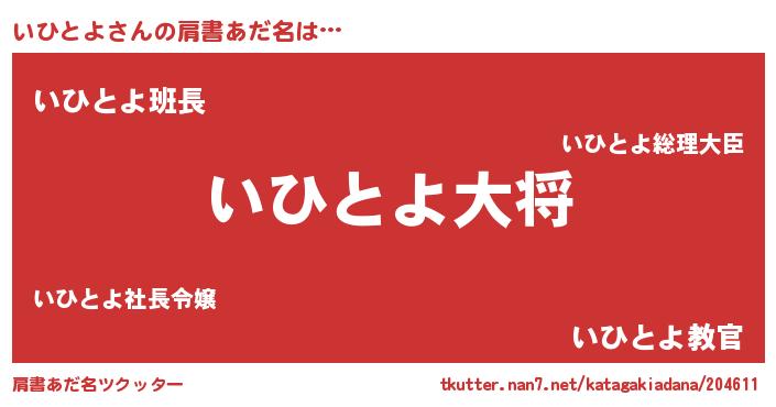 | 男性向けラノベタイトル風あだ名 | 『いひとよ~年齢イコール彼女いない歴の魔法使い~』 |