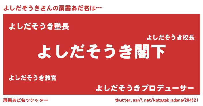| 意味不明あだ名 | 『自称よしだそうき』 |