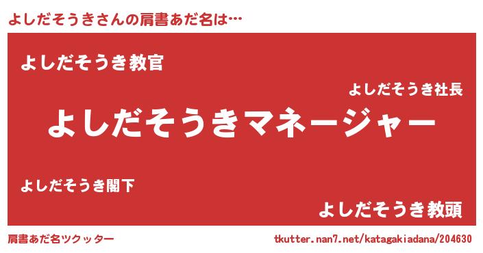 | 男性向けラノベタイトル風あだ名 | 『はたらくよしだそうきさま!』 |