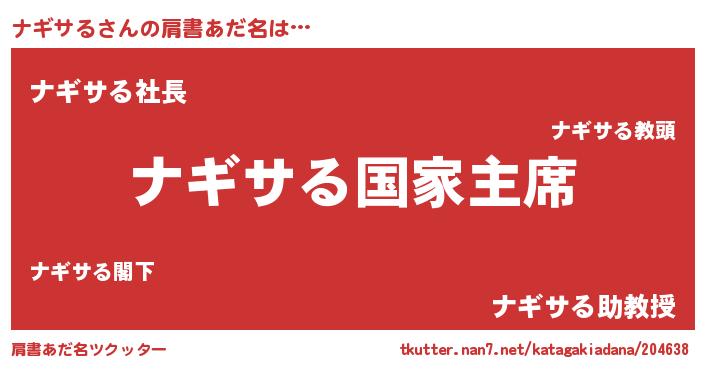 | ヒーロー風カッコイイあだ名 | 『ウルトラナギサるマン』『ネオナギサル』 |