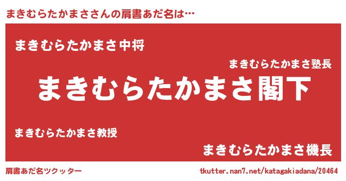 | 意味不明あだ名 | 『自称まきむらたかまさ』 |