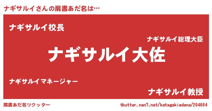 | ヒーロー風カッコイイあだ名 | 『ネオナギサルイ』『スーパーナギサルイ』 |