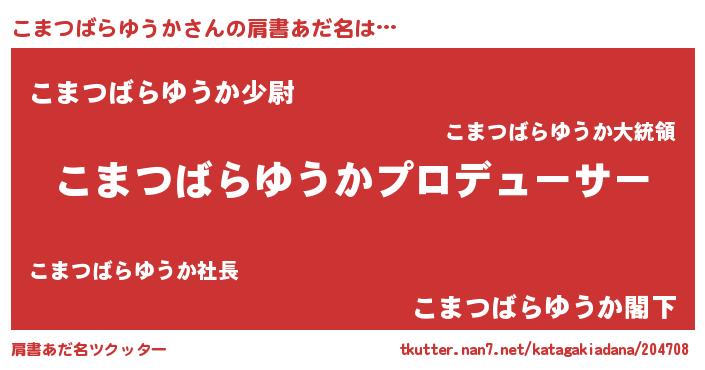 | ヒーロー風カッコイイあだ名 | 『最強戦士コマツバラユウカ』 |