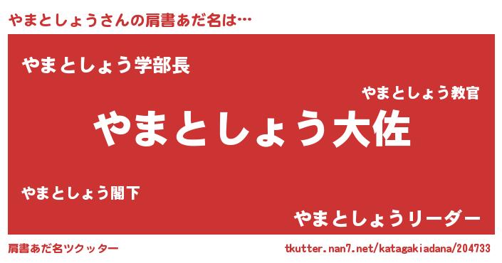 | 男性向けラノベタイトル風あだ名 | 『ヤマトショウスレイヤー』 |
