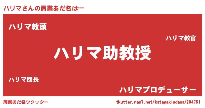 | ヒーロー風カッコイイあだ名 | 『慈愛の使者ハリマ』『ネオハリマ』 |