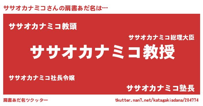 | ヘコむあだ名 | 『ササオカナミコ(笑)』『ササ太郎』 |