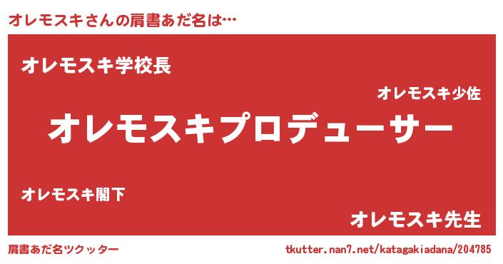 | 男性向けラノベタイトル風あだ名 | 『オレモスキに滅ぼされるだけの簡単なお仕事です』 |