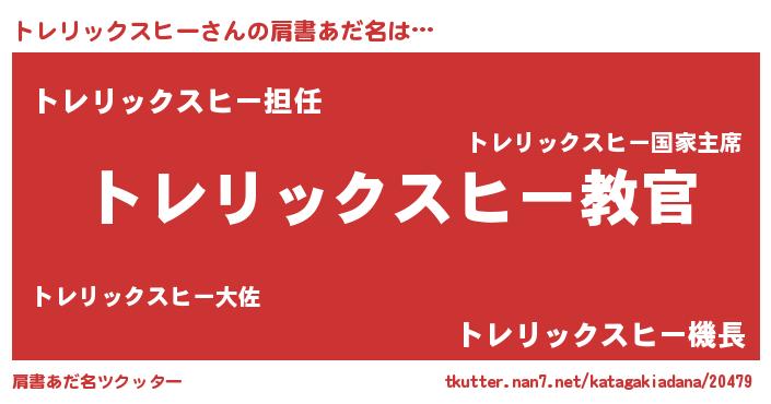 | 意味不明あだ名 | 『住所不定無職トレリックスヒー(86歳)』 |