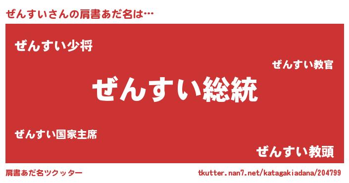 | 男性向けラノベタイトル風あだ名 | 『Re:ぜんすいから始める異世界生活』 |
