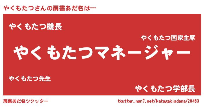 | ヒーロー風カッコイイあだ名 | 『慈愛の使者やくもたつ』『仮面ヤクダー』 |