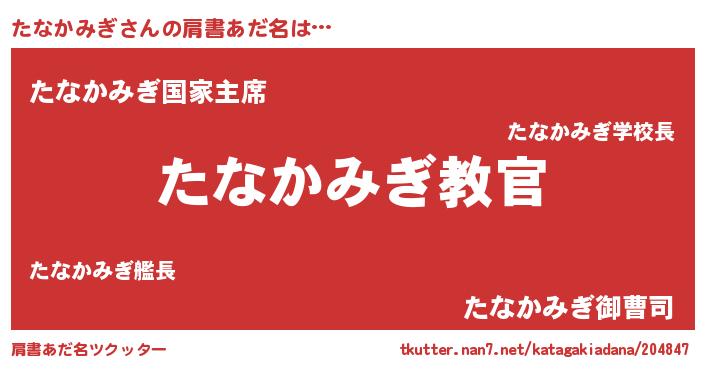 | 男性向けラノベタイトル風あだ名 | 『この素晴らしい世界にたなかみぎを!』 |