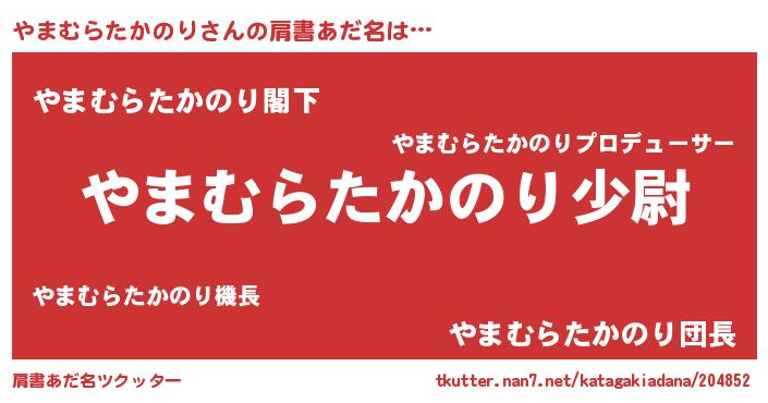 | 女子向けラノベタイトル風あだ名 | 『やまむらたかのりの玉の輿計画!』 |