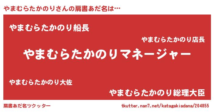 | 男性向けラノベタイトル風あだ名 | 『はたらくやまむらたかのりさま!』 |