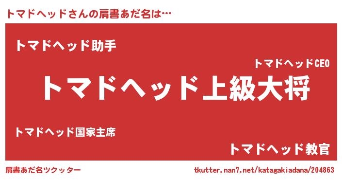 | 男性向けラノベタイトル風あだ名 | 『トマドヘッドスレイヤー』 |