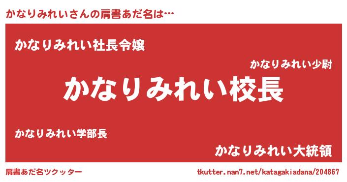 | ヘコむあだ名 | 『かなりみれい(爆)』『かなもー』 |