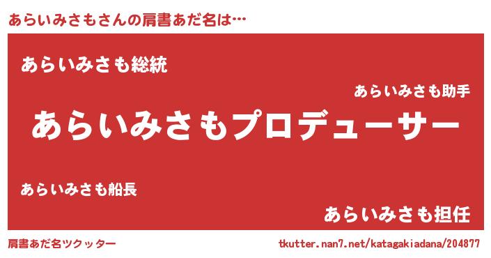 | 意味不明あだ名 | 『自称あらいみさも』 |