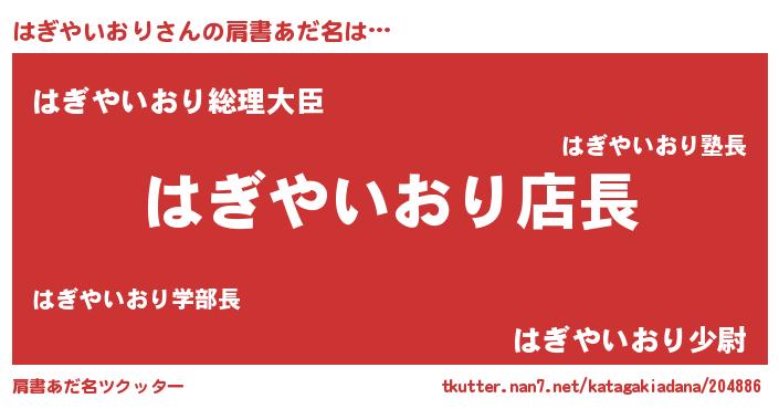 | ヒーロー風カッコイイあだ名 | 『スーパーハギヤイオリ』『暗黒騎士ハギ』 |