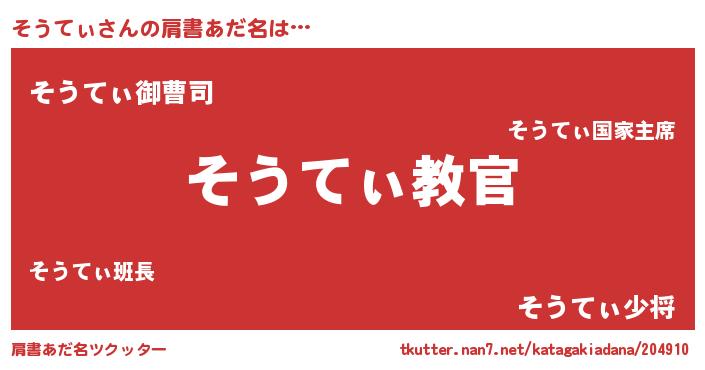| 意味不明あだ名 | 『住所不定無職そうてぃ(85歳)』 |