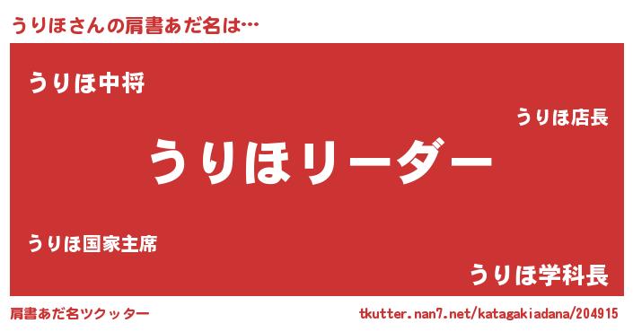 | 女子向けラノベタイトル風あだ名 | 『うりほ様がみてる』『死神うりほの再婚』 |
