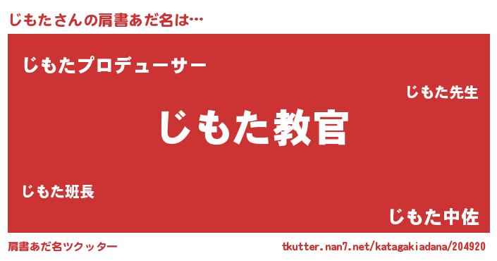 | 意味不明あだ名 | 『住所不定無職じもた(43歳)』 |