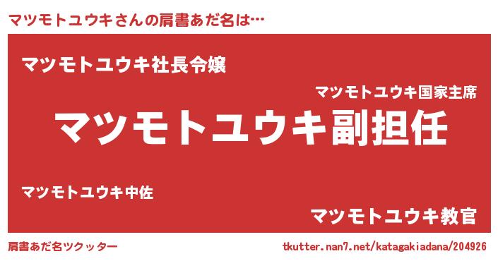 | ヘコむあだ名 | 『マツモトユウキ(遠い目)』『マツもー』 |