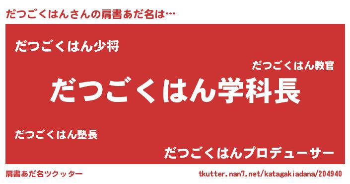 | 男性向けラノベタイトル風あだ名 | 『ノーゲーム・ノーダツゴクハン』 |