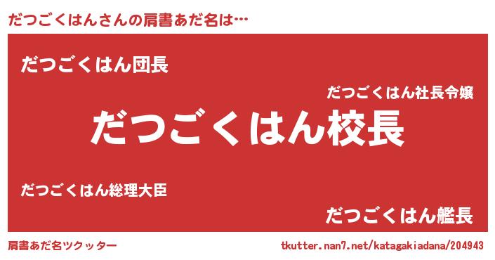 | 男性向けラノベタイトル風あだ名 | 『だつごくはんという概念が存在しない退屈な世界 』 |