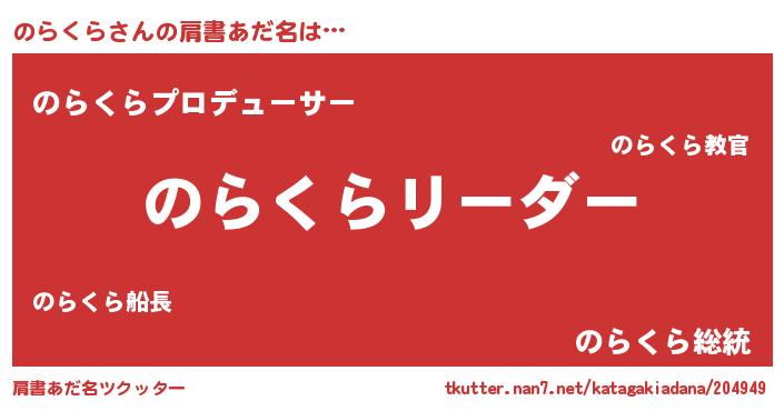 | ヘコむあだ名 | 『のらぷりん』『のらくら(苦笑)』 |